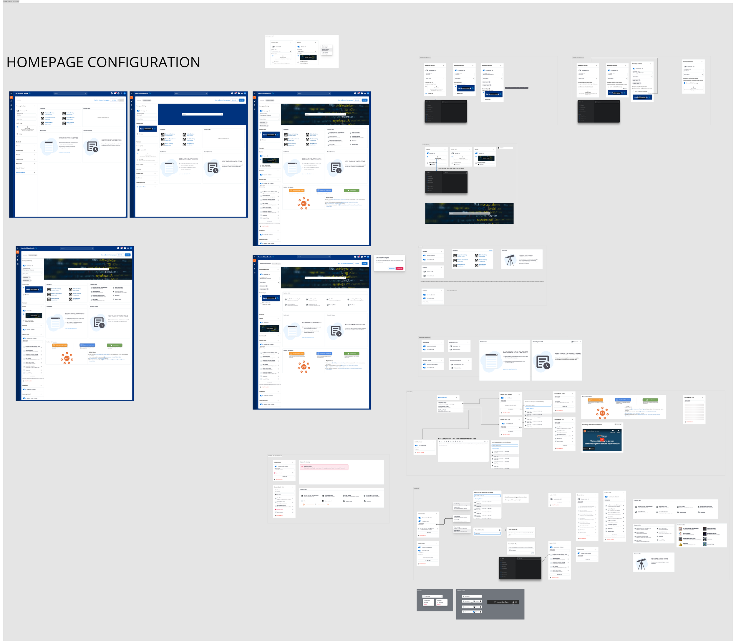 At Alation, I led the design of customizable homepages, giving enterprise customers the ability to tailor their landing experience with content, navigation, and branding that matched their needs. The feature improved engagement by making key resources and workflows more discoverable from the very first click.