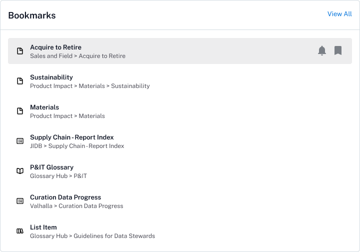 Added global navigational entry for bookmarks for easier access to bookmarked items across the catalog.