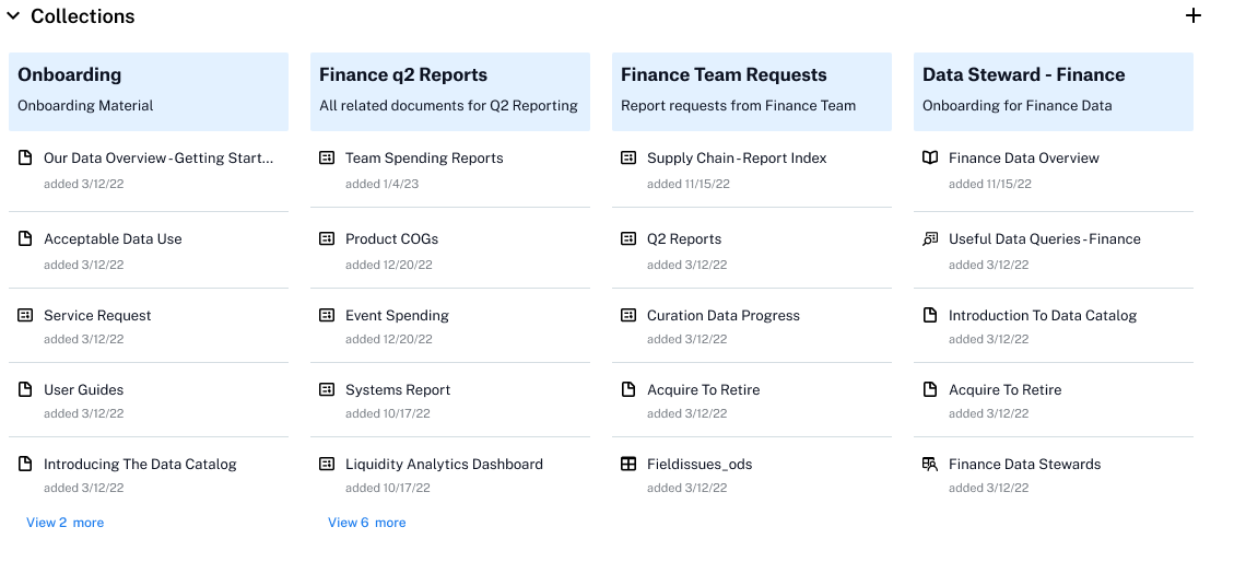Org-wide content – onboarding, trending datasets, announcements.