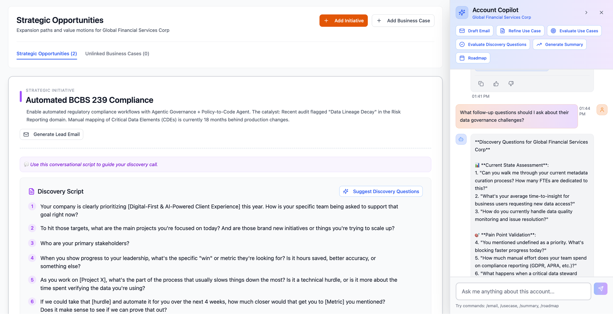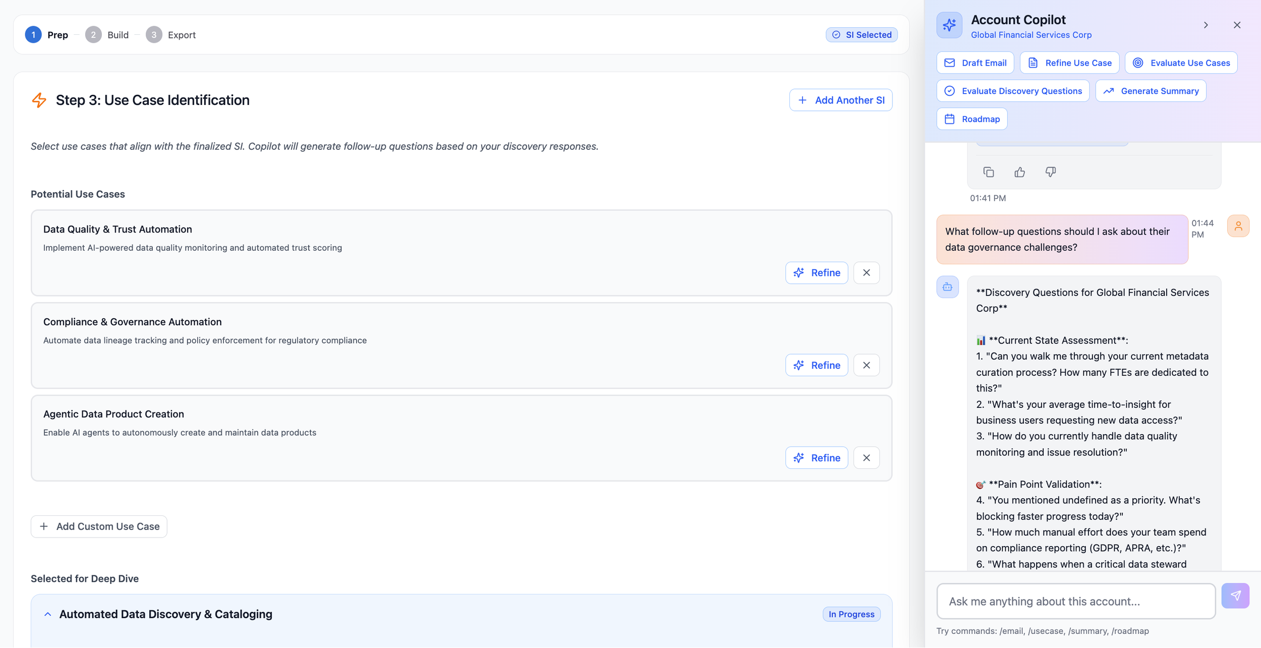 The prototype I presented to Alation's CEO changed the initiative's direction entirely. He dropped the book concept and went fully on board with the agentic platform. What started as a request for a static sales reference became a living, adaptive tool because I challenged the brief and showed a better alternative rather than executing the original ask.